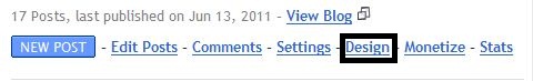 பிளாக்கர் கணக்கில் நுழைந்து dashboard-->click the 'DESIGN' button ( பின்வரும் புகைப்படத்தைப் பார்க்கவும் )